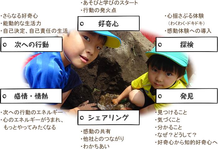 さまざまに様子を変える自然とふれあうことで、自らあそびを生み出せる、感性の豊かな子どもを育てたい。